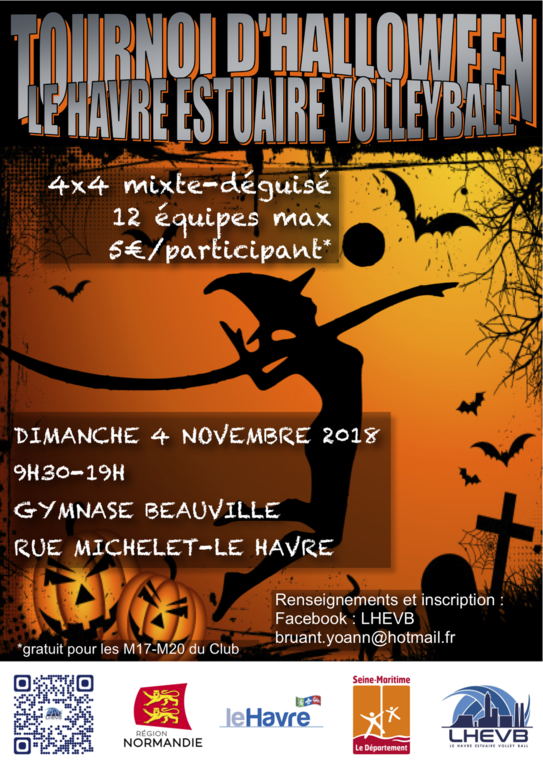 le Havre Estuaire Volley Ball organise son 3e tournoi d'halloween, le dimanche 4 novembre 2018, au gymnase Gabriel Beauville.